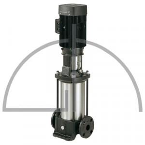 GRUNDFOS vertical centrifugal pump CR 15-12 with attached three-phase motor, pump housing made from grey cast iron, impeller made from stainless steel, shaft seal configured as maintenance-free mechanical seal, motor power and main dimensions according to DIN/IEC